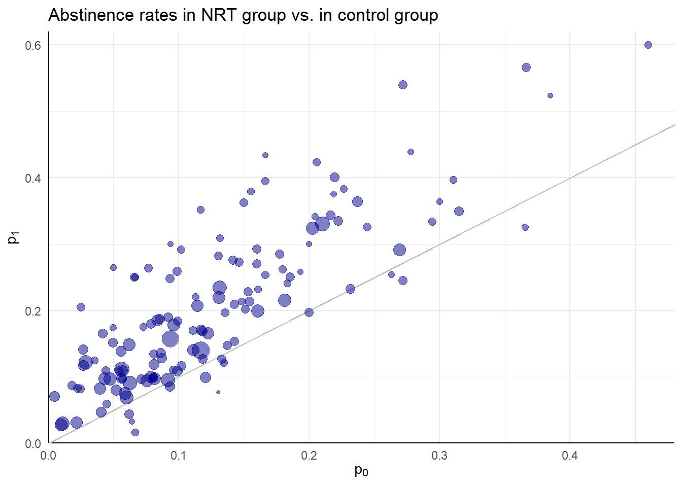 Cochrane Systematic Review of effects of nicotine replacement therapy vs. control on smoking cessation, defined as abstinence at 6+ month follow-up22.