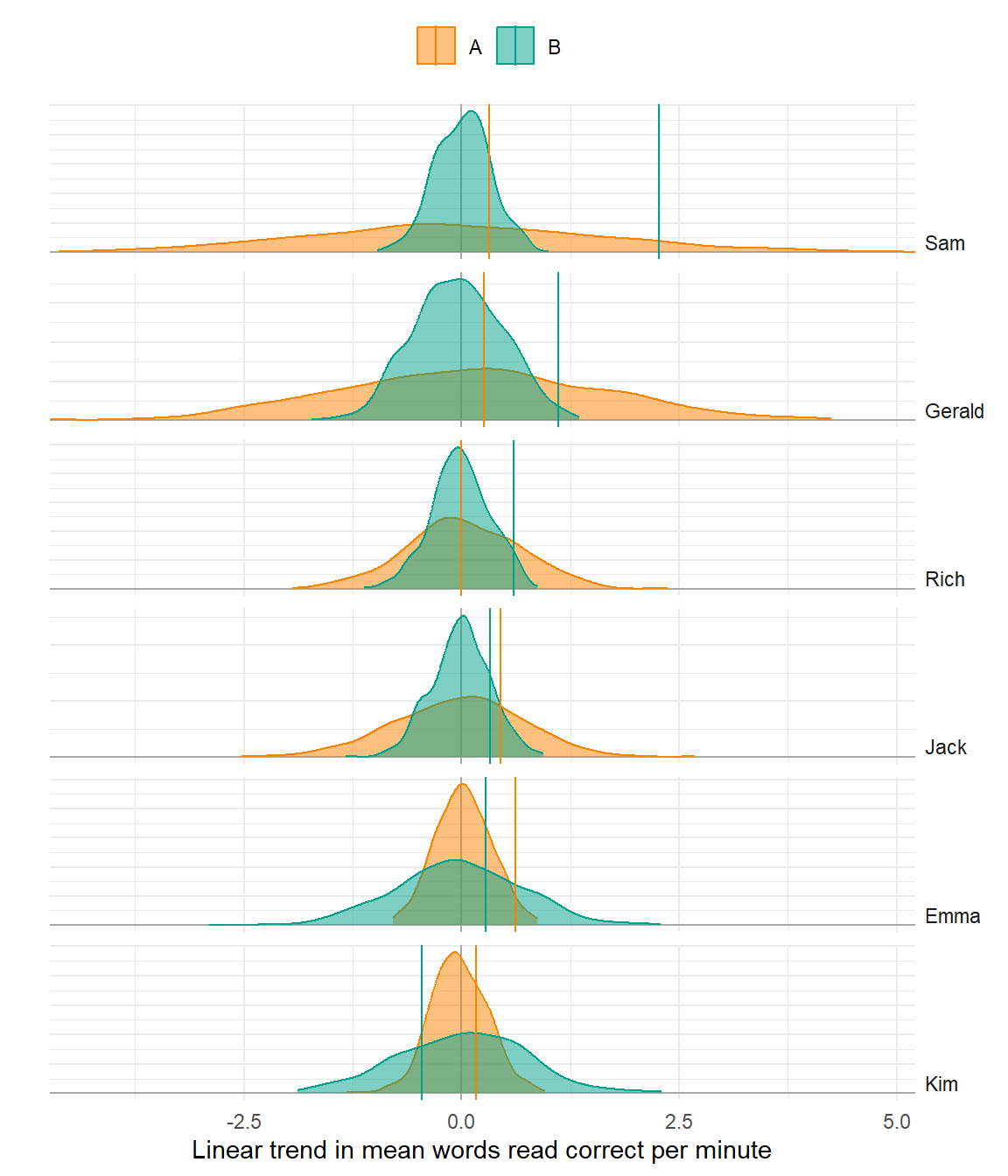 Grekov, Pustejovsky, and Klingbeil (2024) explore use predictive checks for meta-analytic models of oral reading fluency outcomes in SCDs.